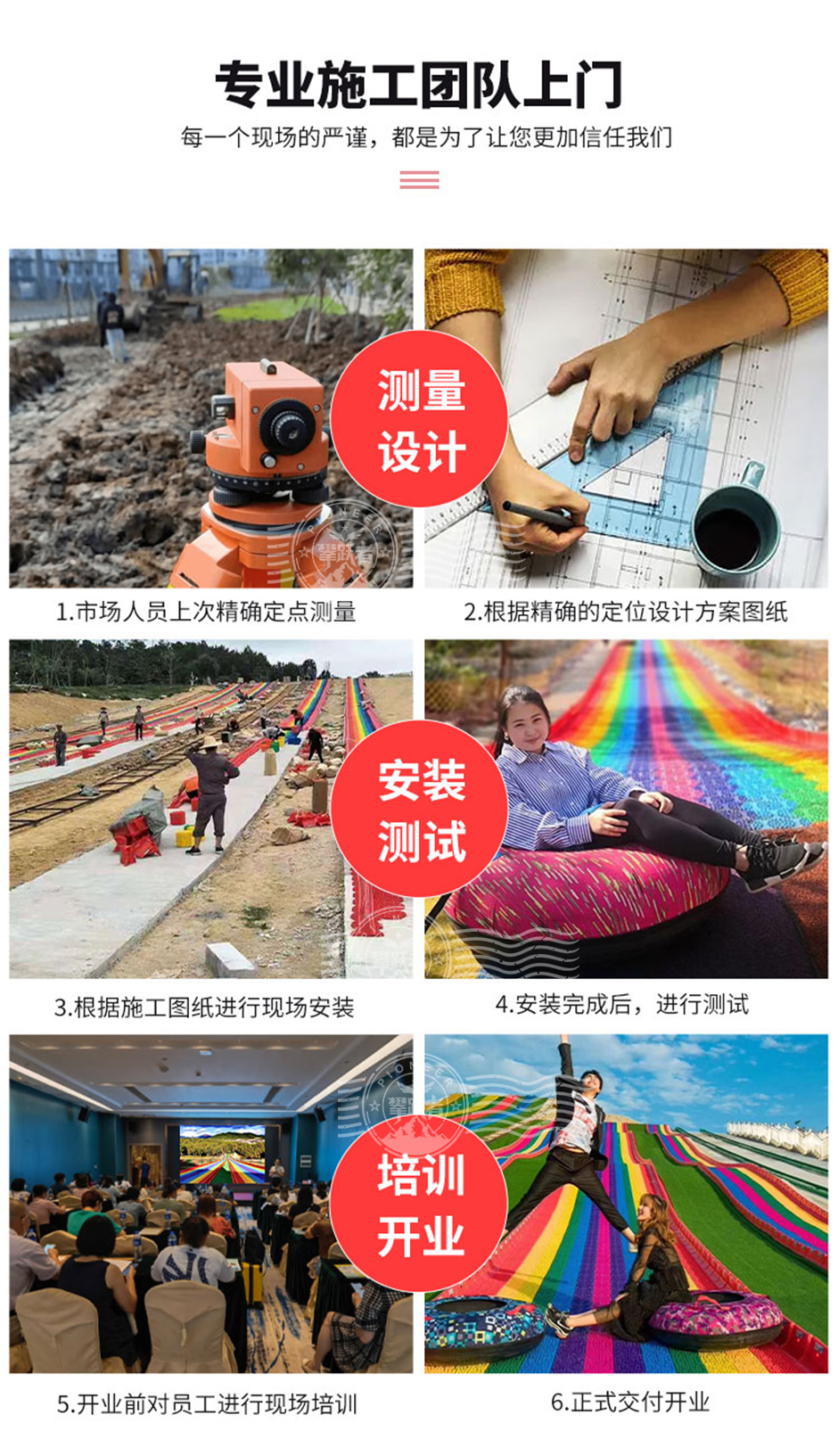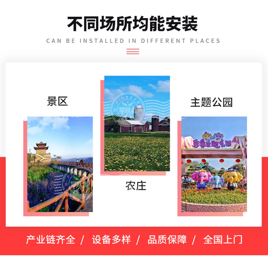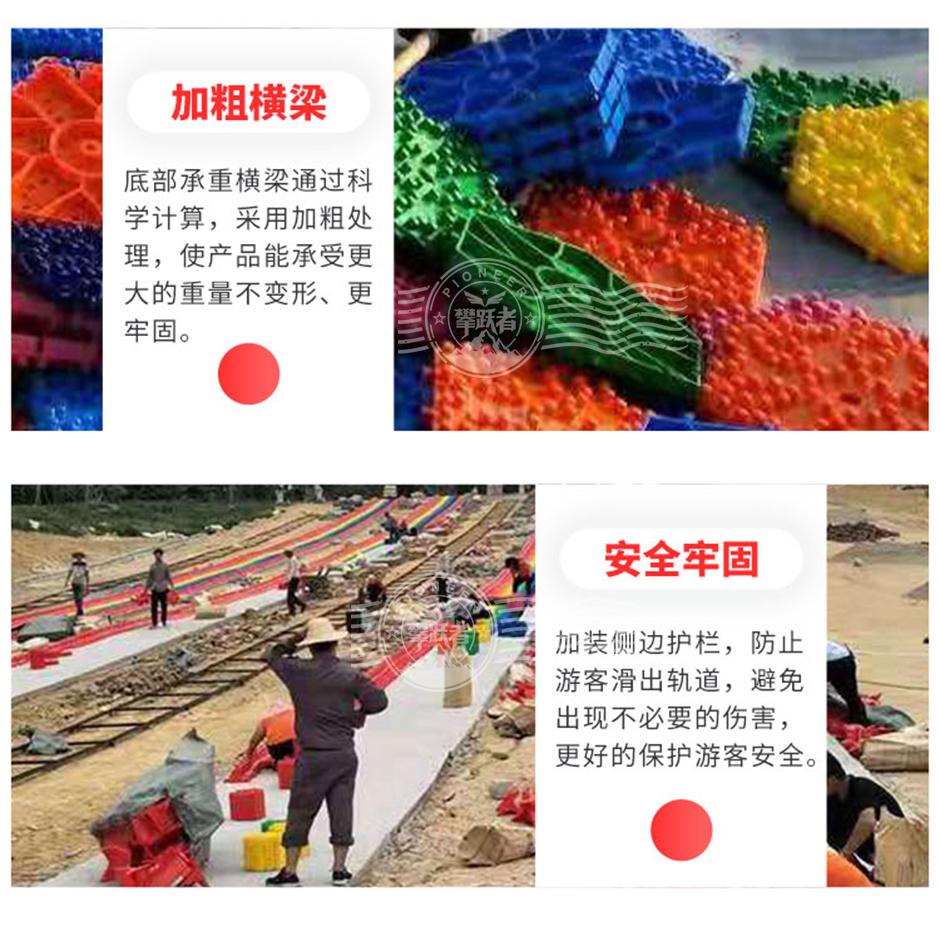 彩虹滑道由七種不同顏色的滑道組成,如紅、橙、黃、綠、藍(lán)、靛、紫等,色彩鮮艷亮麗,能夠吸引人們的目光?;揽梢愿鶕?jù)場(chǎng)地大小進(jìn)行定制,長(zhǎng)度和寬度靈活調(diào)整?。游客坐在特制的滑具上,從高處沿著滑道順勢(shì)而下。由于滑道有一定的坡度,借助重力作用,游客可以快速滑行,體驗(yàn)速度與激情。滑具通常設(shè)計(jì)得較為安全舒適,確保游客在滑行過(guò)程中保持穩(wěn)定。相比其他大型游樂(lè)設(shè)施,彩虹滑道的建設(shè)和運(yùn)營(yíng)成本相對(duì)較低,維護(hù)也較為簡(jiǎn)單。因此,它受到許多投資者的青睞,特別是在農(nóng)場(chǎng)和景區(qū)中,彩虹滑道因其投入成本低、回報(bào)快、工期短而成為熱門(mén)選擇?。