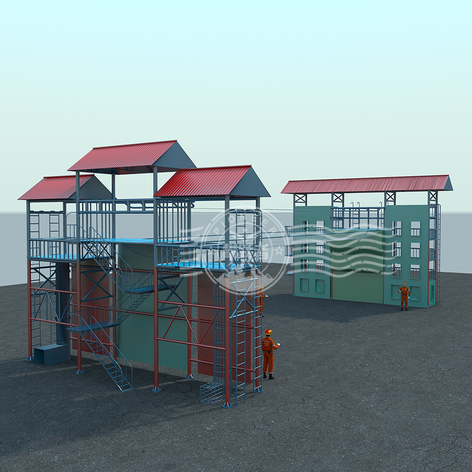訓(xùn)練科目1)地下救援操(2)攀爬橫渡(3)定點(diǎn)下降(高空山岳救援操)(4)豎井救援(5)高空障礙鋼支架。